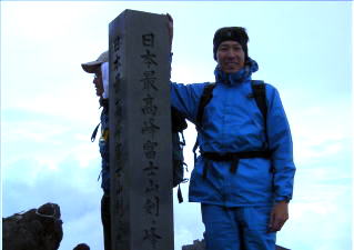 旅行も大好きです。学生時代はオートバイで日本一周をし、海外は欧米・アジアの21ヶ国の渡航歴があります。台湾・ベトナム・スペインがお気に入りでした。40歳を過ぎてから、親友と「俺達の青春」と名付けて、富士山登頂(写真)や屋久島縄文杉拝謁、四万十川をカヌーで下る、沖縄でジンベイザメに手を噛まれる!など、毎年「人生に刻めることをやろう!」とチャレンジを続けています。今度は犬ぞりに挑戦してみたいです。3人の子どもが自活するようになれば、夫婦でゆっくり日本一周してみたいですね。